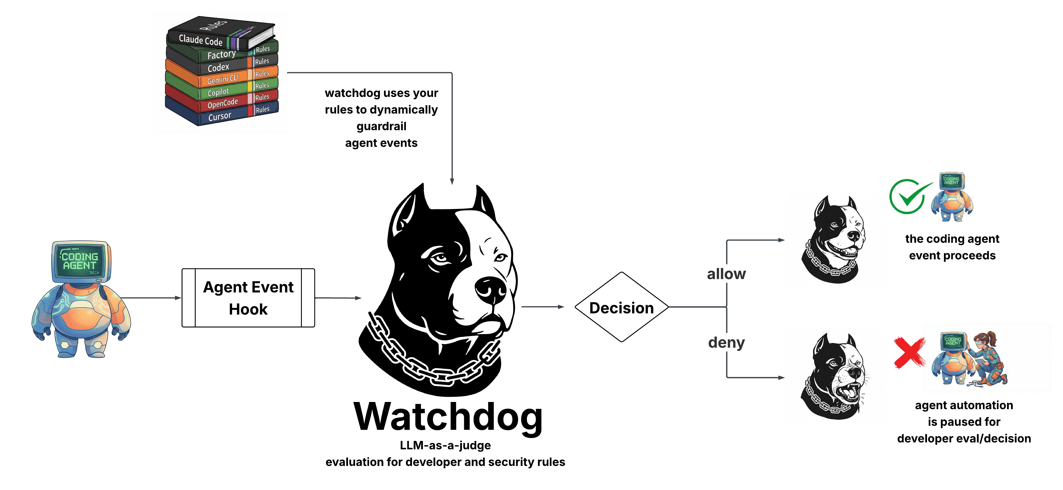 AI agents are inherently non-deterministic. They can be prompted, confused, or manipulated in ways that deterministic rules can't anticipate. Watchdog addresses this by fighting fire with fire—using AI to evaluate AI.